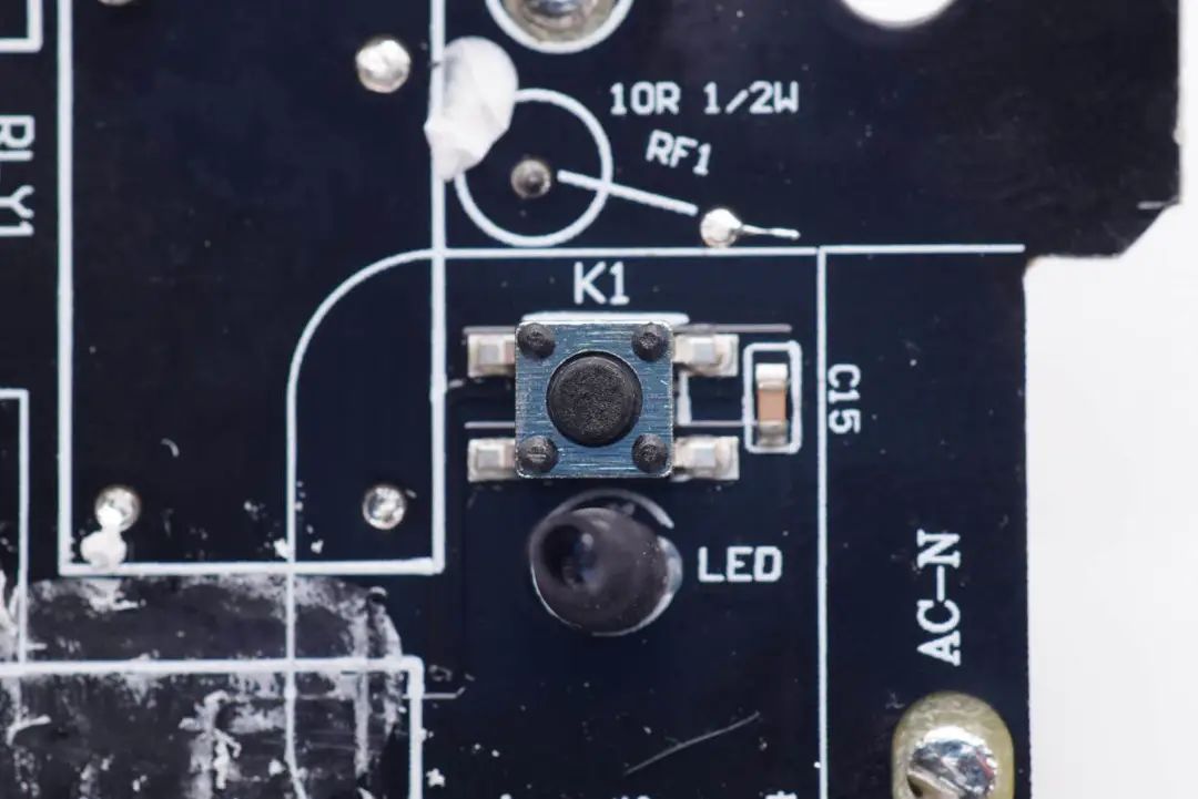 丝印L1515的IC,响应按键开关操作控制继电器。