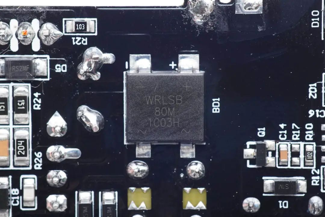 开关电源的输入端整流桥来自沃尔德,型号WRLSB80M。